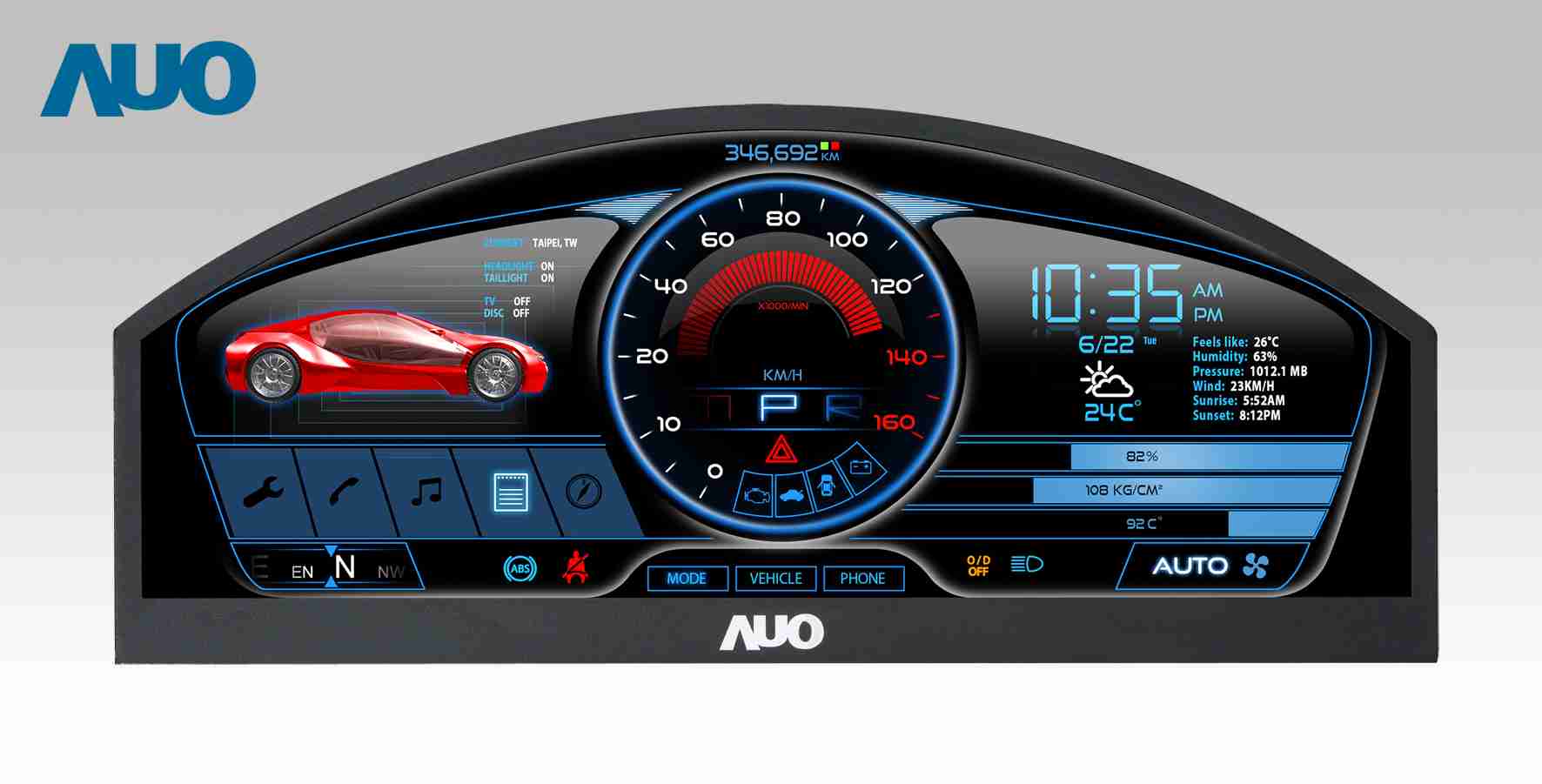 优游UB8 12.3吋超高解析异型切割车用面板,,拥有流线外观及精细画质